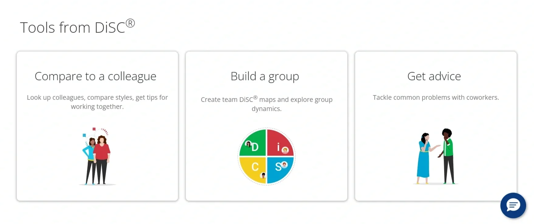 The Catalyst™ Learning Management Platform is an online, interactive learning platform that combines the DiSC personality assessment with flexible training options to help employees improve their communication, collaboration, and social/emotional skills. It provides personalized DiSC style results, offers real-time tips for working with colleagues, and allows users to compare their style with others in the company through features like the "Compare Colleagues", "Build a Group", and "Get Advice" functions.